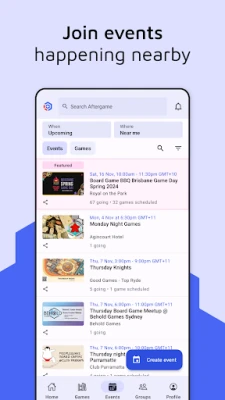 Aftergame vam omogućava da lako pronalazite događaje, upoznajete nove prijatelje, efikasno upravljate svojom kolekcijom igara i pratite sve sesije igranja. Detaljne statistike vam pružaju dublji uvid u vaše aktivnosti. Sve za ljubitelje društvenih igara.