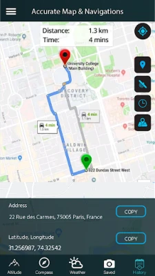 Sa samo jednim dodirom, Pametni visinomer vam otkriva vašu trenutnu lokaciju, nadmorsku visinu i detaljne GPS koordinate. Ova sveobuhvatna aplikacija transformiše vaše planinarenje, vožnju automobilom ili bilo koju drugu avanturu na otvorenom u iskustvo potpunog informisanja. Prati vašu stvarnu nadmorsku visinu iznad nivoa mora i beleži detaljnu istoriju vaših merenja u preglednim grafikonima, omogućavajući vam da pratite svoj napredak iz dana u dan. Uživajte u potpunom pristupu GPS koordinatama geografske dužine i širine za sve vaše rute, bilo da vam je potrebna trenutna adresa lokacije ili detaljan pregled terena putem offline i online mapa.