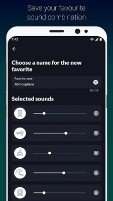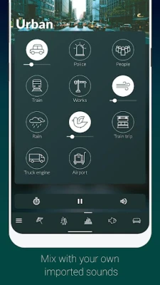 Atmosphere ide korak dalje u unapređenju vašeg mentalnog blagostanja. Integracijom binauralnih otkucaja i izohronih tonova, aplikacija omogućava stimulaciju uma, smanjenje stresa i podsticanje kreativnosti, oslobađajući vaš um i dušu. Za ultimativnu personalizaciju, imate mogućnost uvoza sopstvenih audio zapisa i njihovo mešanje sa postojećim zvukovima, stvarajući zaista jedinstvene kombinacije. Uz praktičan tajmer, možete se opustiti znajući da će se aplikacija samostalno isključiti, čuvajući bateriju uređaja i osiguravajući neometan prelazak u san. Kontrola jačine svakog pojedinačnog zvuka pruža vam potpunu slobodu da kreirate savršeno zvučno okruženje.