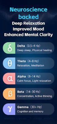 Dizajnirana za svestranu upotrebu, aplikacija "Binaural Beats: Sleep & Focus" je vaš pratilac za različite potrebe. Oslobađanje od stresa, produbljivanje vežbi svesnosti, postizanje mirne usredsređenosti tokom učenja ili rada, kao i priprema za opušteno veče – sve to postaje dostupno jednostavnim odabirom odgovarajućeg zvučnog pejzaža. Uronite u tišinu uma, podržanu naučno utemeljenim frekvencijama koje vam pomažu da pronađete svoj balans i jasnoću u svakom trenutku. Prepustite se mirnom slušanju i otkrijte svoj potencijal za mirniji i fokusiraniji život.