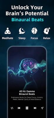 U srcu Brainwaves-a leži moć binauralnih ritmova, dizajniranih da nežno stimulišu prirodne frekvencije vašeg mozga i podstaknu pozitivne promene u raspoloženju, energiji i mentalnoj oštrini. Posebno ističemo našu inovativnu 40Hz temu, za koju je dokazano da ima izuzetno blagotvoran uticaj na mozak, potencijalno olakšavajući stanja poput Alchajmerove bolesti, fibromijalgije, tinitusa, pa čak i smanjujući bol i upale. Uz to, aplikacija nudi i raznoliku ambijentalnu muziku sa zvukovima prirode, klavira i drugih umirujućih melodija, savršenih za potpuno opuštanje i dubok san. Programi su precizno odabrani za fokus, opuštanje, spavanje, meditaciju, ublažavanje anksioznosti, depresije, stresa, podsticanje pozitivnog uma, samopouzdanja, pamćenja i opšteg isceljenja.