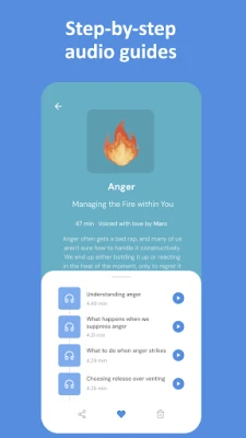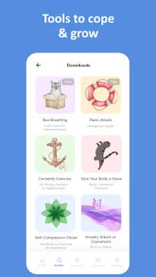 Unutar Myselflanda otkrićete bogatstvo resursa koji vam pomažu da se suočite sa izazovima poput anksioznosti, stresa, besa, krivice, stida ili tuge. Naši audio vodiči korak po korak pružaju delotvorne strategije i praktične korake za savladavanje odlaganja obaveza, niskog samopoštovanja i poboljšanje međuljudskih odnosa. Uz to, dostupne su i intuitivne vežbe i tehnike – od tehnika disanja, uzemljenja i opuštanja, preko praksi svesnosti i somatskih vežbi, do imaginacionih metoda – koje vas opremaju za efikasno upravljanje preplavljujućim emocijama i napadima panike. Poseban alat, Emocionalni Navigator, pažljivo vas prati dok istražujete svoja osećanja, razumete njihove poruke i birate konstruktivne načine za njihovo razrešavanje, oslanjajući se na principe CBT, ACT i EFT pristupa.