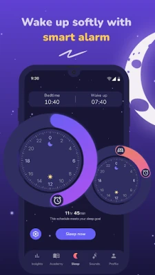 Ova aplikacija precizno prati obrasce vašeg spavanja, beležeći faze dubokog, laganog i REM sna. Automatski detektuje hrkanje, prekide i nemirne pokrete tokom noći, pružajući vam uvid u ključne faktore koji utiču na vaš odmor. Za ublažavanje simptoma nesanice, na raspolaganju su vam tehnike opuštanja, meditativna muzika i umirujući zvuci za uspavljivanje. Blokirajte ometajuće zvukove okoline uz pomoć belog šuma, prirodnih zvukova i ambijentalnih audio opcija. Inteligentni budilnik budi vas u optimalnom trenutku vašeg ciklusa spavanja, obezbeđujući da se probudite osveženi, bez naglih prekida. Poboljšajte higijenu spavanja kroz podsetnike za odlazak na počinak i praćenje postavljenih ciljeva, istovremeno smanjujući nivo stresa i anksioznosti radi lakšeg uspavljivanja. Nudi i nežnu zvučnu terapiju, pogodnu i za najmlađe ili osetljive spavače.